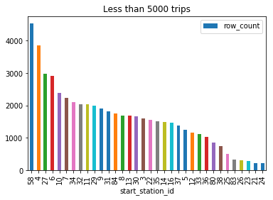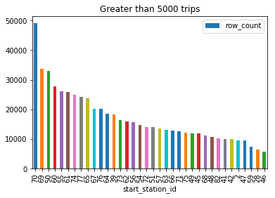 Station 70 has significantly higher number of trips than any other station A large number of stations have less than 5000 trips over the time period (2013-2015)