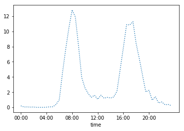 Below is a graph which shows the net number of bikes at any given time on the docking station 70. The number of bikes in play have been totalled and we have calculated the mean across the time period and plotted it against the time of the day. This clearly shows which time periods have the highest and lowest traffic.